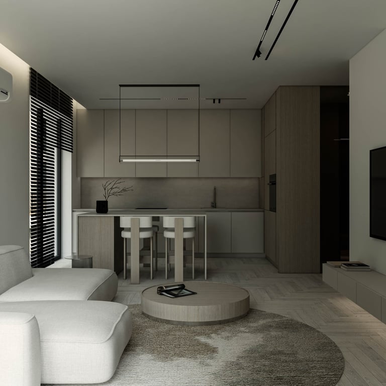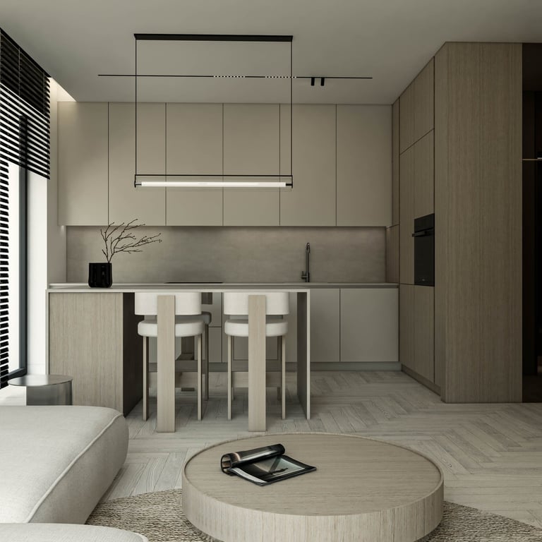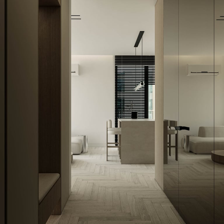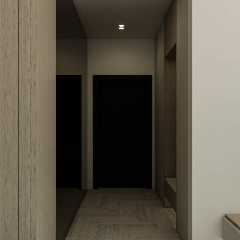 šviesaus ir modernaus buto Piliamiestyje interjero projektas - 54m2